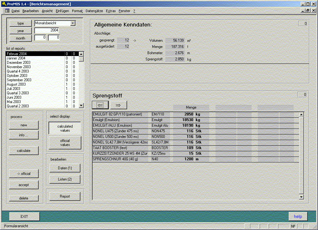The example on the right shows an overview form for the compilation of all reports. Weekly, monthly, quartaly or annually reports are perpeared by a single mouse-click.